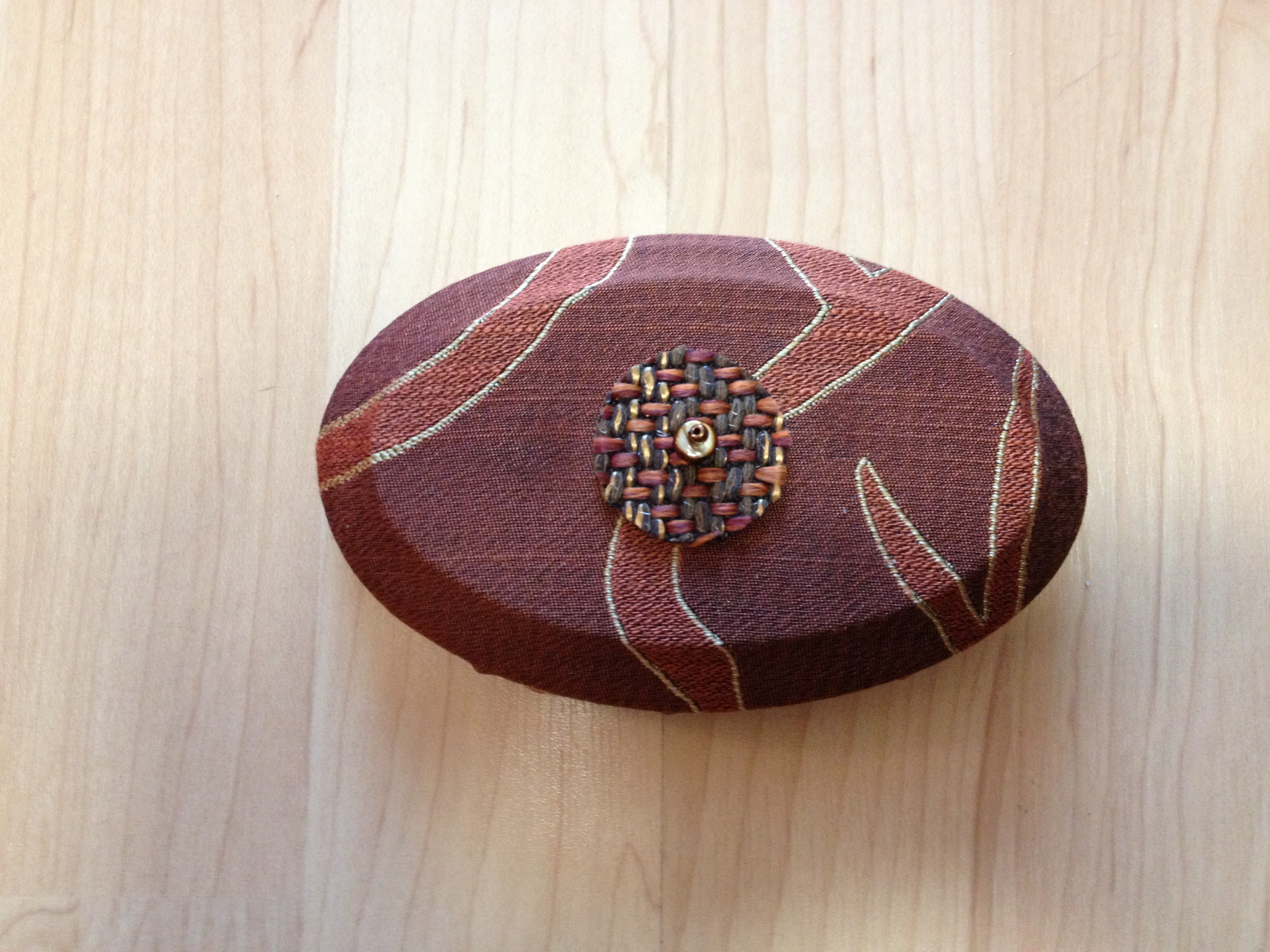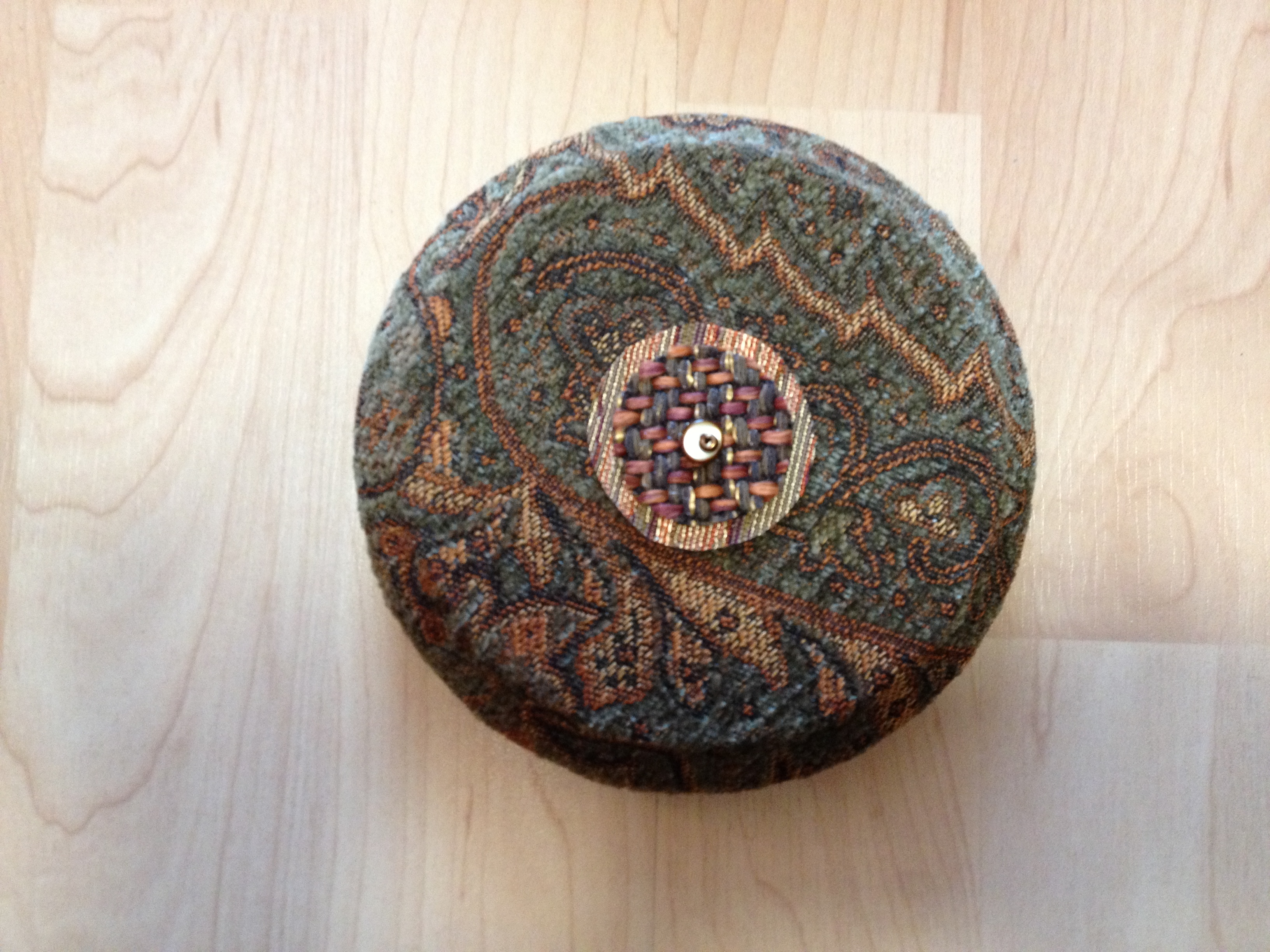 Think you can’t add a dash of panache to your walls without spending a lot of money? This project combines the wallpaper samples that I acquired at SCRAP along with $1 wood shapes and a few beads from Michaels Crafts. I think it is an easy way to add some color and texture to any wall. You can use any number, size, and combination of wood shapes to match the size of the space you are decorating. The possibilities are endless!