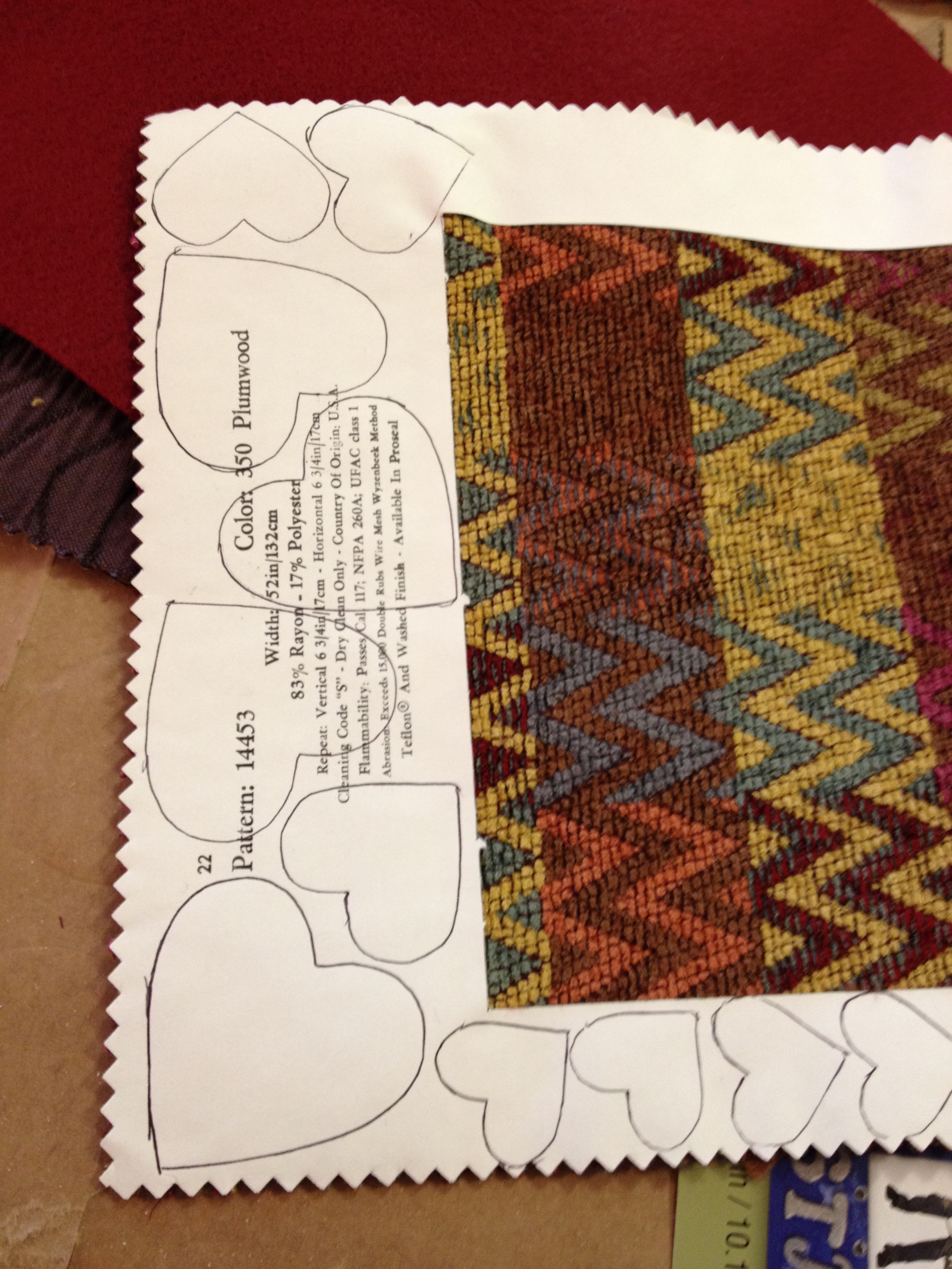 I created 3 different sizes of hearts to use as a template and began cutting them out of the materials.