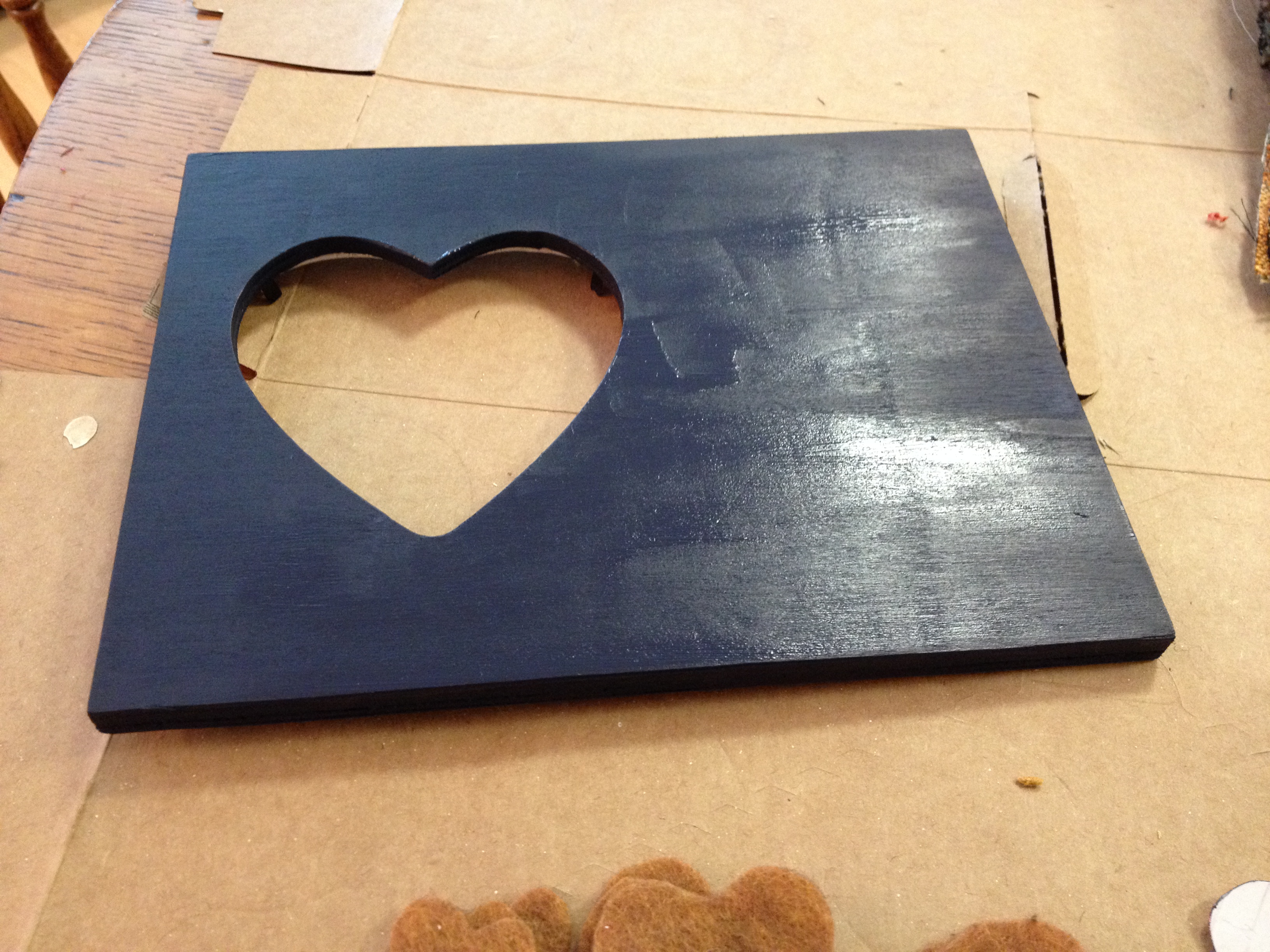 In order to avoid any wood show-through on the finished product, I painted the frame a dark blue.